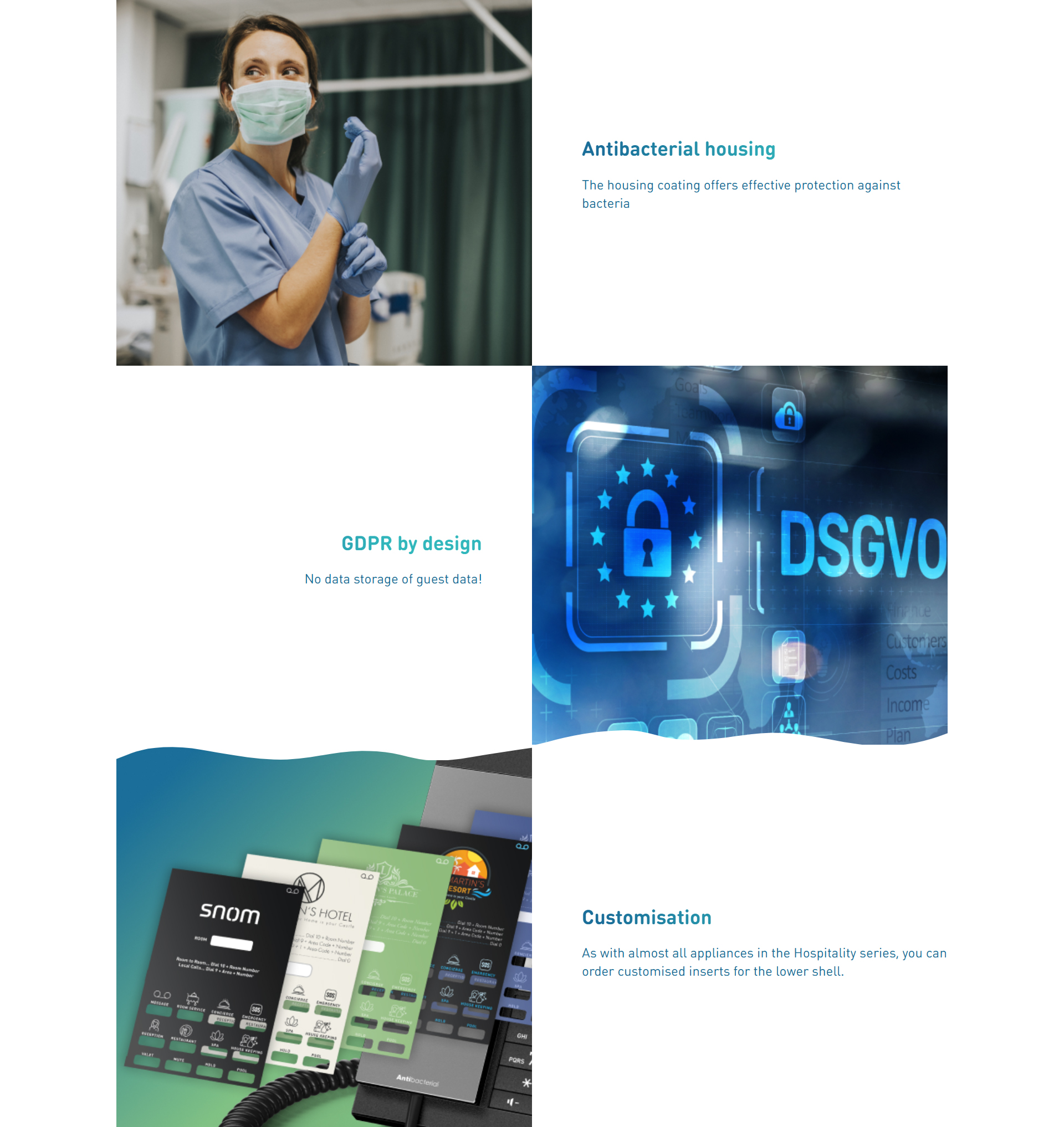 The Snom HD331 is a hotel and guest room phone with a modern design that has been specially developed to meet high demands. Its cordless DECT handset ensures maximum freedom of movement, while the elegant, slim design fits perfectly into any ambience.